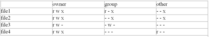 Na ovaj način uvedeno pravo pisanja i pravo čitanja datoteke omogućuju da se za svakog korisnika jednostavno ustanovi koja vrsta upravljanja datotekom mu je dozvoljena, a koja ne. Tako, korisniku, koji ne posjeduje pravo pisanja datoteke, nisu dozvoljena upravljanja datotekom, koja izazivaju izmjenu njenog sadržaja.