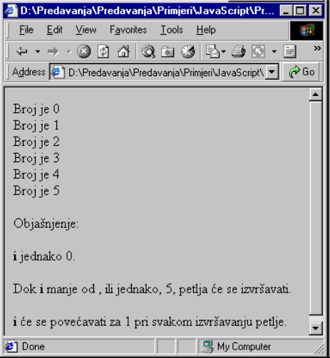 - <p>Dok <b>i</b> manje od , ili jednako, 5, petlja će se izvršavati.</p>