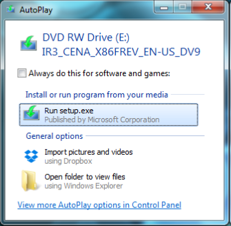 Ubacite WINDOWS 8 instalacioni disk u DVD uređaj. Ako računar ne pokrene automatski DVD pomoću opcije AutoPlay (Slika 1.), otvorite Explorer, izaberite DVD disk i pokrenite program setup.exe.