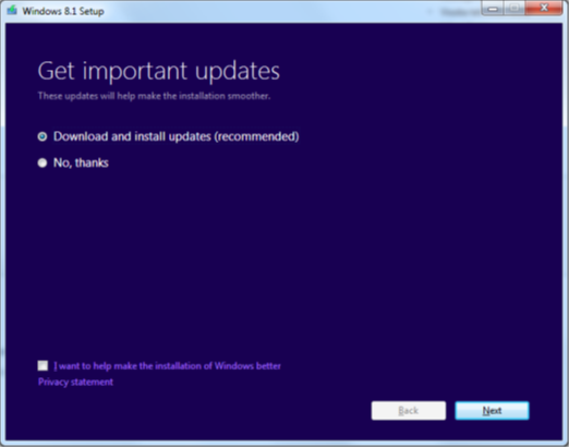 Nakon pokretanja instalacije neophodno je odabrati jednu od dvije opcije vezano za preuzimanje ažuriranja (Slika 2.).