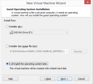 Ovim smo samo rezerviali protor za virtuelnu mašinu, pa je neophodno da se pokrene instalacija odgovarajućeg instalacionog fajla. Dodatna podešavanja se vrše u odgovarajućem prozoru, prikazanom na Slici 9. i Slici 10.