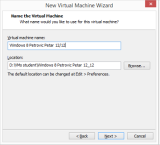 U polju za naziv virtuelne mašine upisati ime, prezime i broj indeksa, a zatim kliknuti na dugme Next, kao na Slici 6.