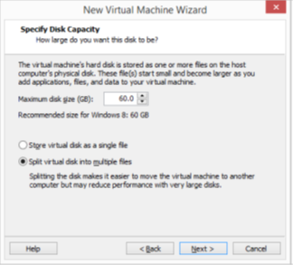 Na Slici 7. je prikazana mogućnost odabira prostora na hard disku koji dodjeljujete virtuelnoj mašini na korišćenje. Izabrati 60 GB.