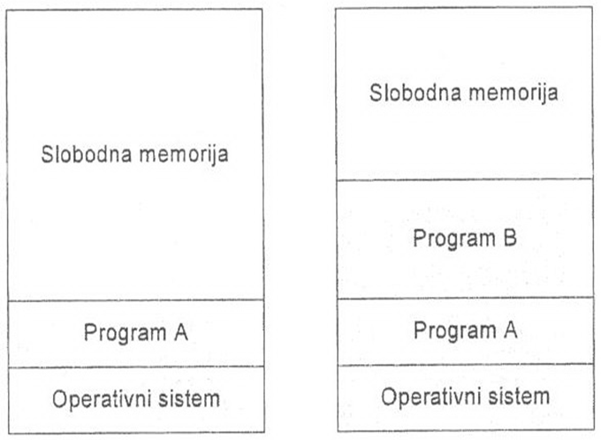 Kod ovog načina upravljanja memorijom postoji potreba zaštite koda operativnog sistema od mogućih promjena od strane korisničkih procesa. Zaštita se može uraditi pomoću baznog i graničnog registra.